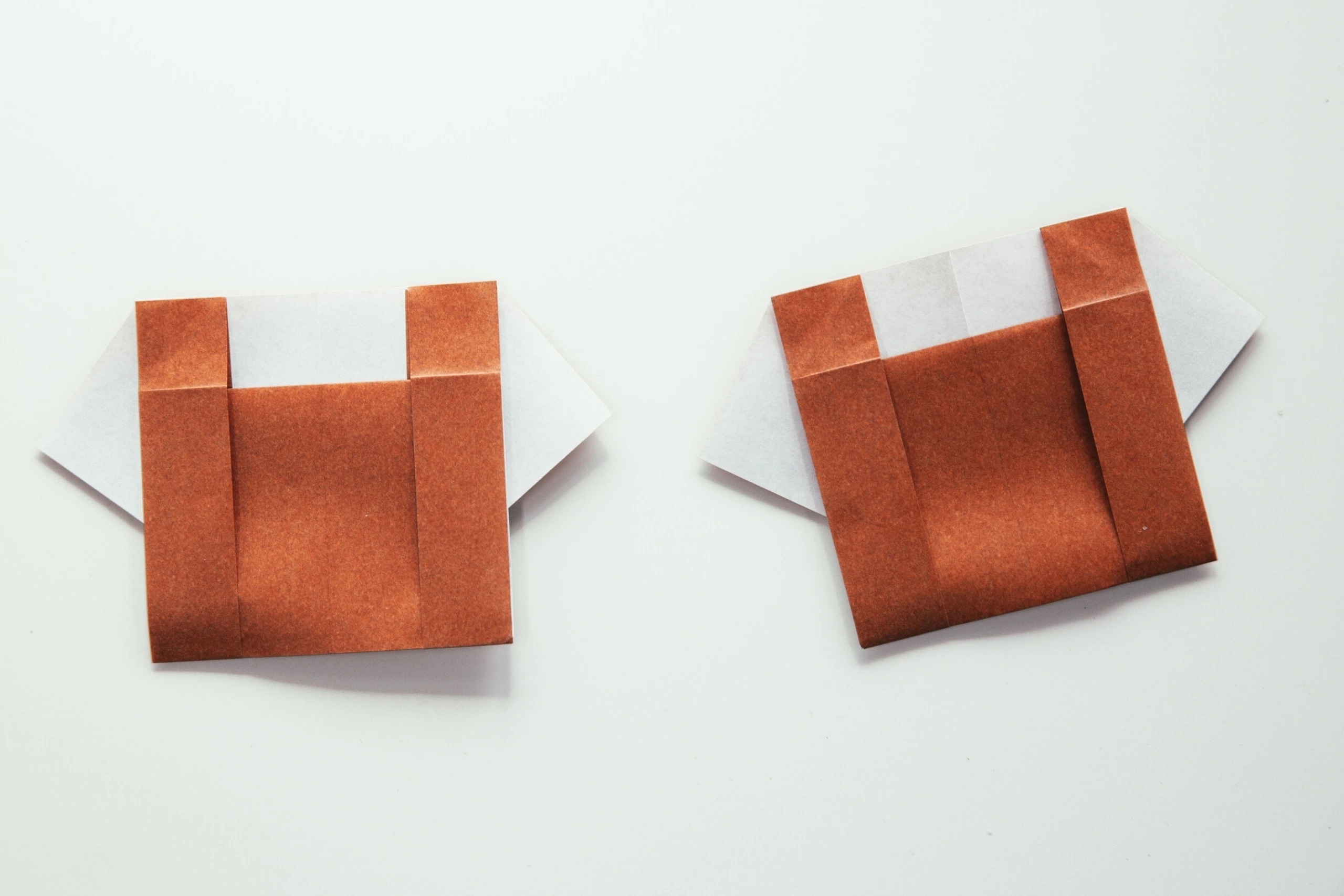 Get a 15*15 cm origami paper, with different colors on each side, and you will get 7.5*12 cm overalls.
