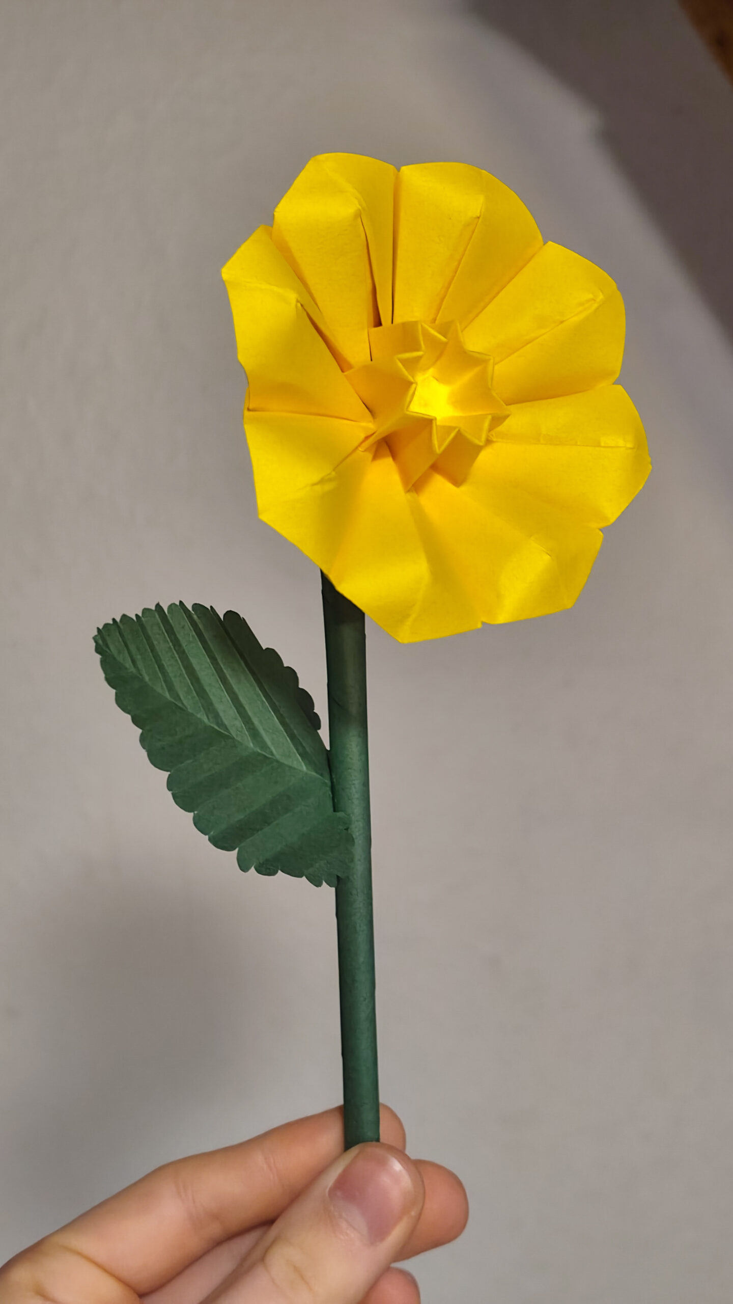 This origami sunflower can be a thoughtful gift for your friends and family, especially those who love flowers and nature. It is designed to resemble a natural and realistic sunflower, with its radiant petals and detailed center.